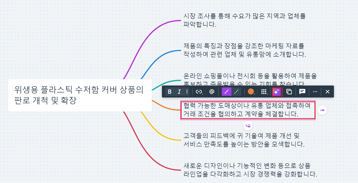 그리고 이렇게 나온 항목 중에 또 하나를 정해서 Generate ideas 기능을 다시 넣어주면 다시 새롭게 가지치기를 합니다.