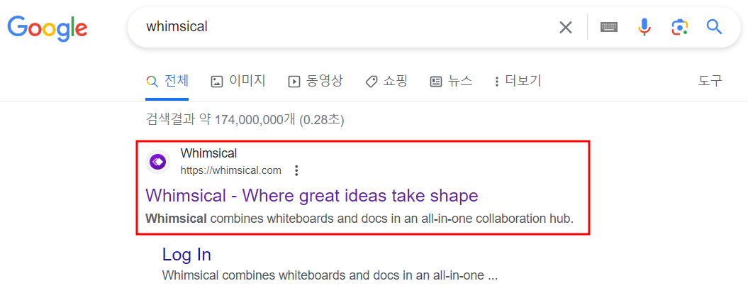 구글 검색창에 'Whimsical'이라고 치면 사이트가 하나 나오는데요. 이곳으로 들어갑니다.