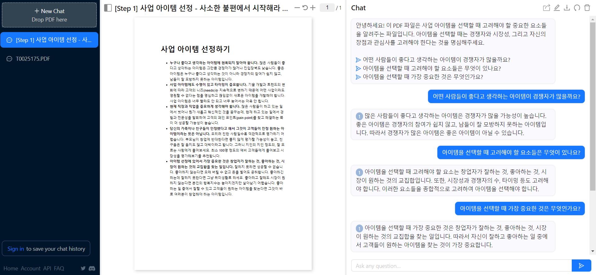 그럼 다시 우측 대화창에 들어가서 명령을 내리시면 제대로 작동합니다. pdf 파일의 문서를 요약하고, 문서 안에 있는 내용을 기반으로 하여 질문도 할 수 있지요. 하지만 사용해본 결과 요약기능은 아직까지는 만족할만한 수준은 아니지만, 대략적으로 해당 문서의 주제 정도는 파악할 수 있는 정도입니다.