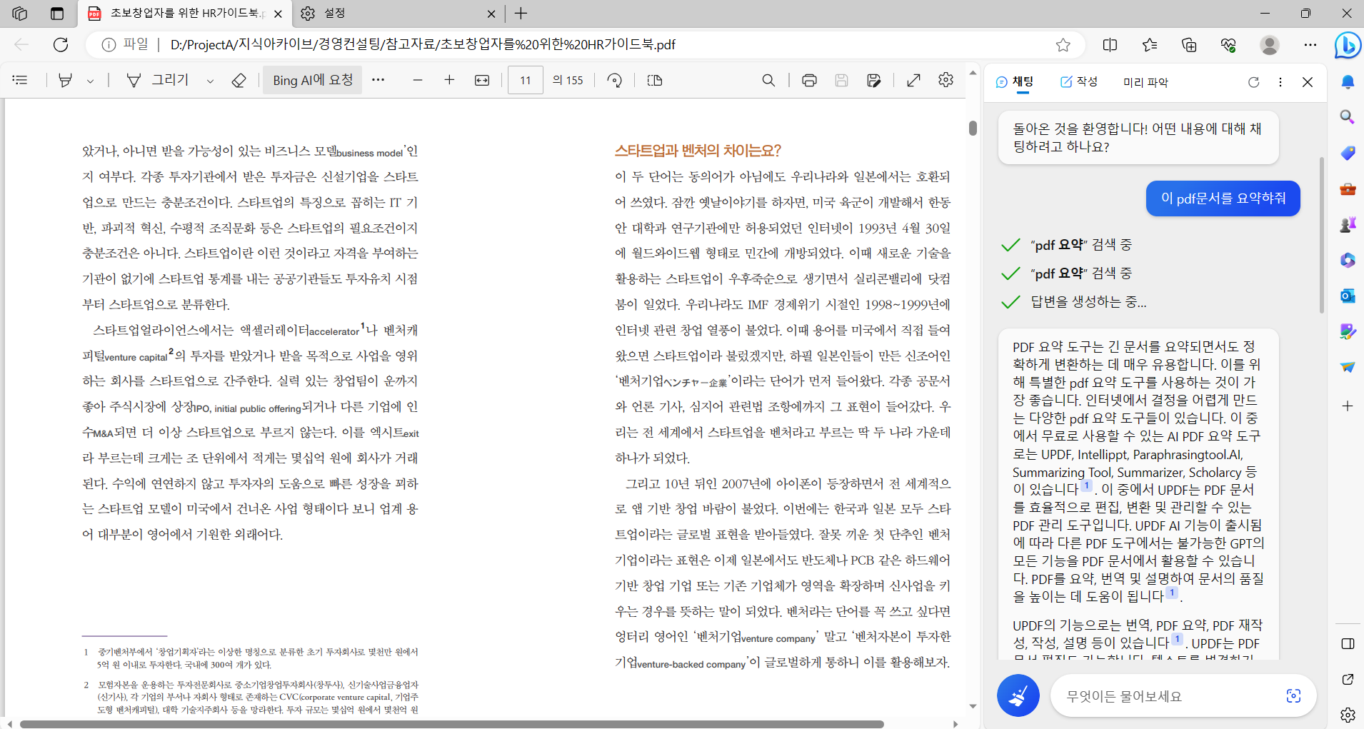 □ 빙 Bing 을 이용한 PDF 문서 요약하기