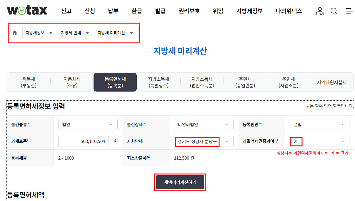 위택스 -> 지방세 정보 -> 지방세 안내 -> 지방세 미리계산