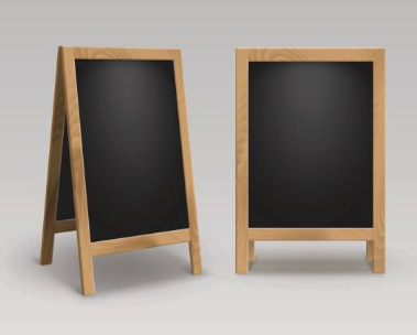 ○ 형태와 디자인: 입간판은 보통 A자형, T자형, L자형 등으로 디자인된다. 크기는 소형에서 중형까지 다양하며, 이동과 설치가 쉬운 경량 소재가 선호된다. 이를 통해 매일 손쉽게 내용을 변경하거나 위치를 조정할 수 있다.