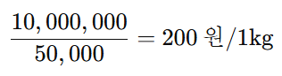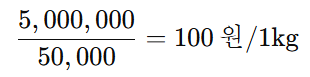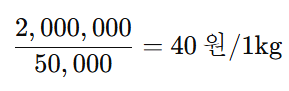 (예시) 재고에 대해 화재, 도난 등의 위험을 보장하기 위해 지불하는 보험료다. 연간 보험료가 2,000,000원이라면, 1kg당 보험 비용은,