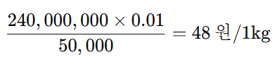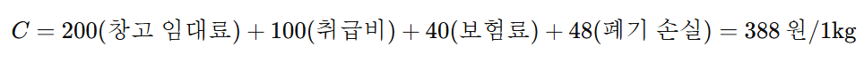 - 창고 임대료, 취급비, 보험료, 폐기 손실 등: 388원/1kg
