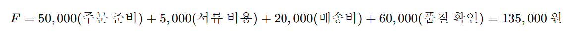 따라서 1회 주문당 발생하는 비용(F)은 135,000원으로 계산된다.