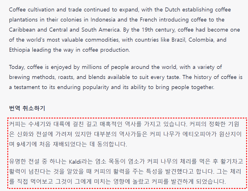 번역하기를 누르면 이렇게 바뀝니다! 신기하죠!! ChatGPT 활용은 하나하나 차근차근해 배워가면 되는 거죠!!