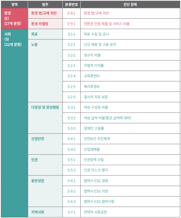 다음 포스팅에서 영역별로 범주와 진단항목을 좀 더 세부적으로 알아보도록 하겠습니다. ESG는 기업만 실천하는 게 아니고 개인도 실천할 수 있답니다. 윤리적인 기업의 제품을 구입하고, 환경을 생각한 소비를 실천하는 노력이 바로 ESG가 아닐까 싶네요. 오늘 포스팅은 여기서 마치겠습니다. ^_^